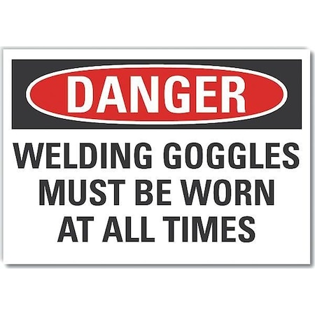 Eye Danger Reflective Label, Horizontal Rectangle, Number of Printed Sides 1, English, Sign Format Traditional OSHA, Sign Legend Welding Goggles Must Be Worn At All Times, Sign Legend Background Color White, Sign Legend Style Text