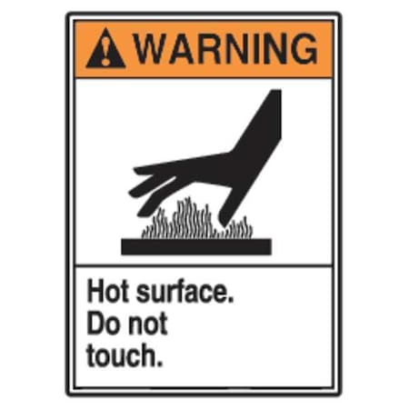 'Warning Sign, Sign Subject Matter Hot, Height 5 In., Width 3-1/2 In., Sign Material Vinyl, Sign Mounting Style Surface, Legend Warning Hot Surface Do Not Touch, Printed Language English, Package Quantity 5'