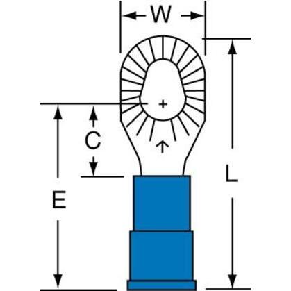 The 3M Scotchlok blue brazed vinyl brazed ring terminal is sold 500 per case and is another quality product from 3M. The insulation length on this brazed ring terminal is 0.8 in. The overall length measures 1.01 in.