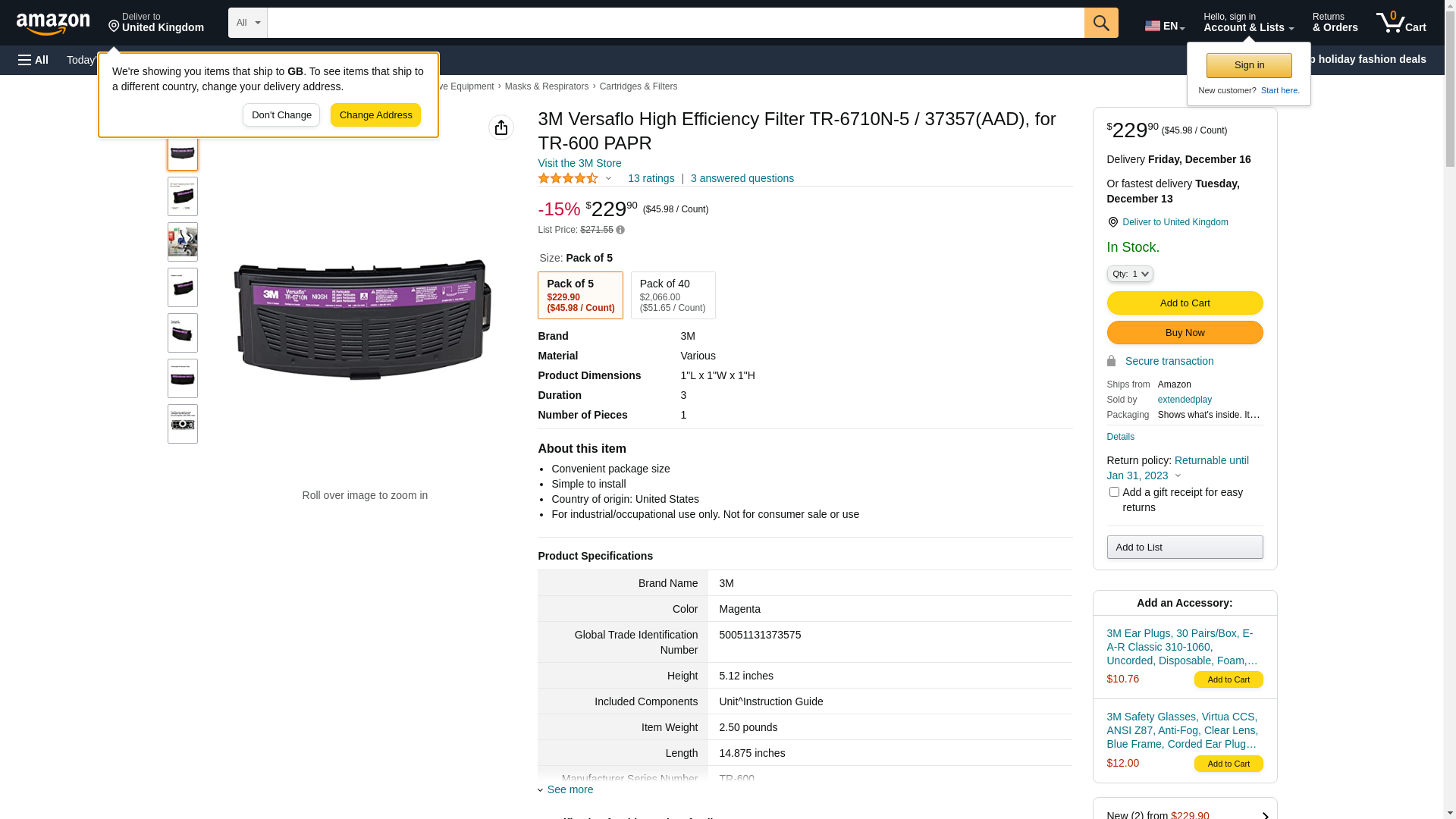 Order TR-6710N-5 by 3M 70071618279 High Efficiency Filter PAPR - US Mega Store