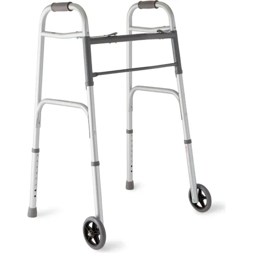Medline Two-Button Folding Walkers with 5" Wheels - 2-Button Folding W ? Grayline Medical