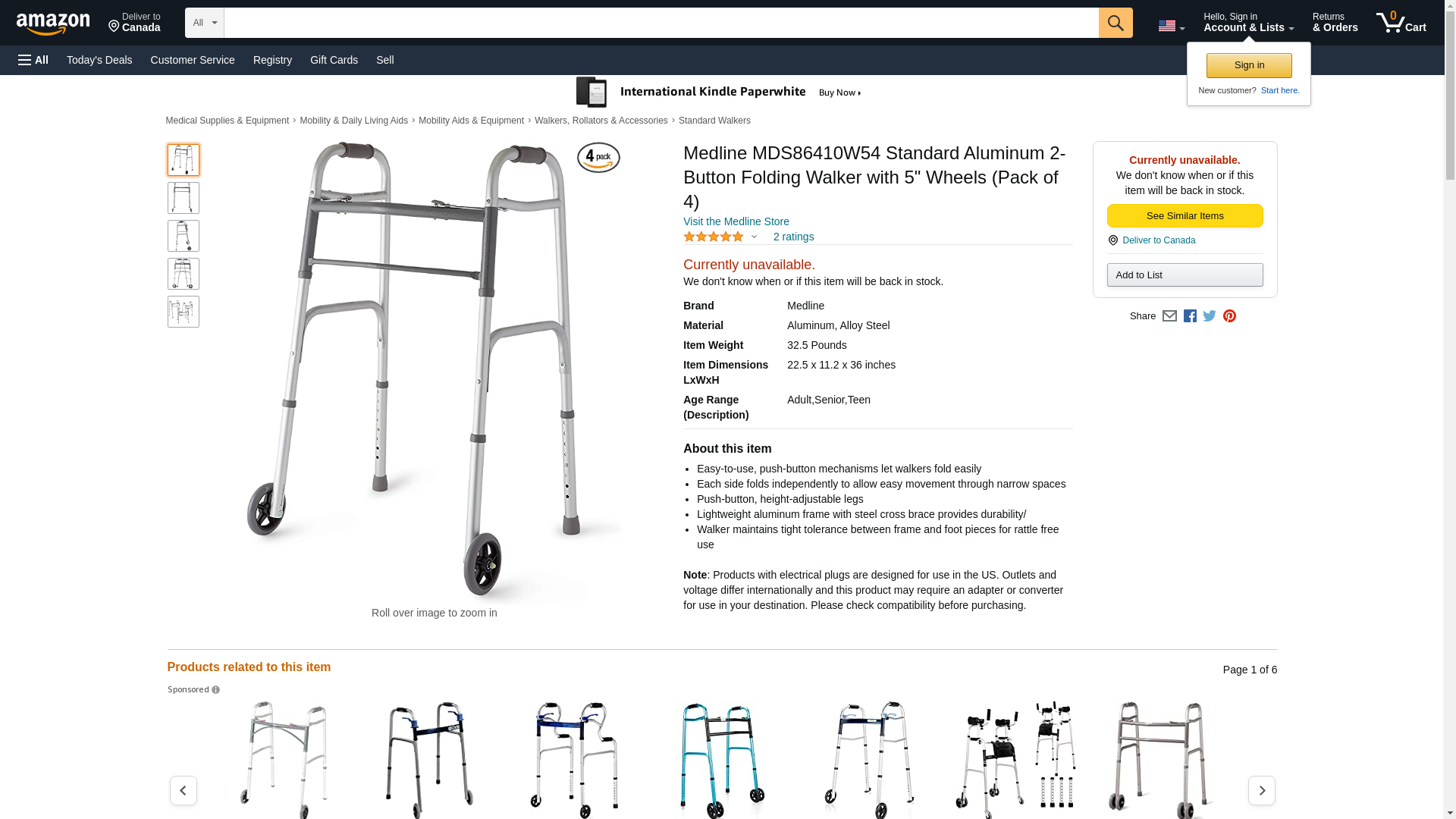 | Feature | Deluxe Walker: Each Side Operates Independently To Provide Easy Movement Through Narrow Spaces And Greater Stability When Standing Up, While The Front Cross Braces Are Located Near Top Of Walker To Allow Full Stride. Sturdy 1" Aluminum Tubing Is Ligh |