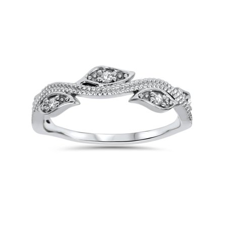 1/10ct Vintage Floral Leaf Diamond Wedding Stackable Ring 14K White Gold