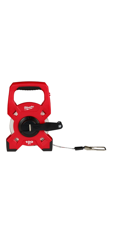 The MILWAUKEE? 100' Steel Open Reel Long Tape features a GRIME GUARD Blade Wiper for the smoothest retraction and to wick away jobsite contamination. This open reel measuring tape with a steel blade delivers up to 50% less stretch than fiberglass long tapes. Reinforced 3:1 Planetary Metal Gears won't strip, increasing the life of the tool.