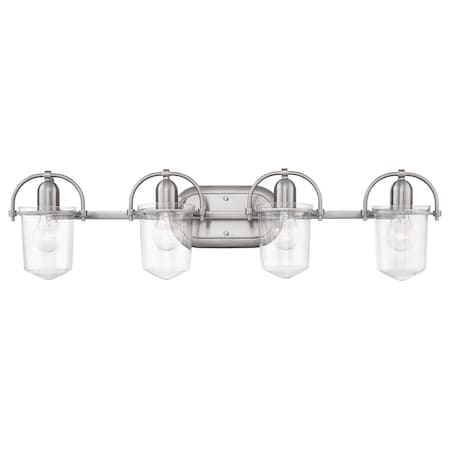 Hinkley Clancy Collection Four Light Bathroom Vanity Fixture, Brushed Nickel w/Clear Glass