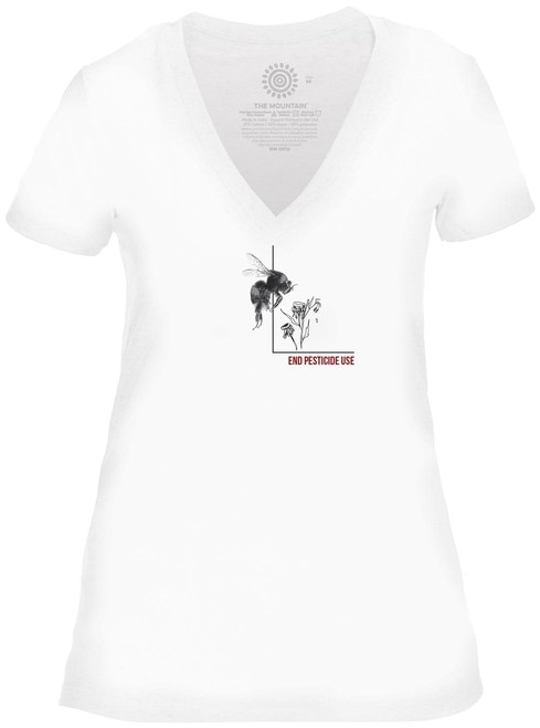 The Mountain 41557600000 Blank White Pesticide Bumble Bee V-Necks T-Shirt - Small
