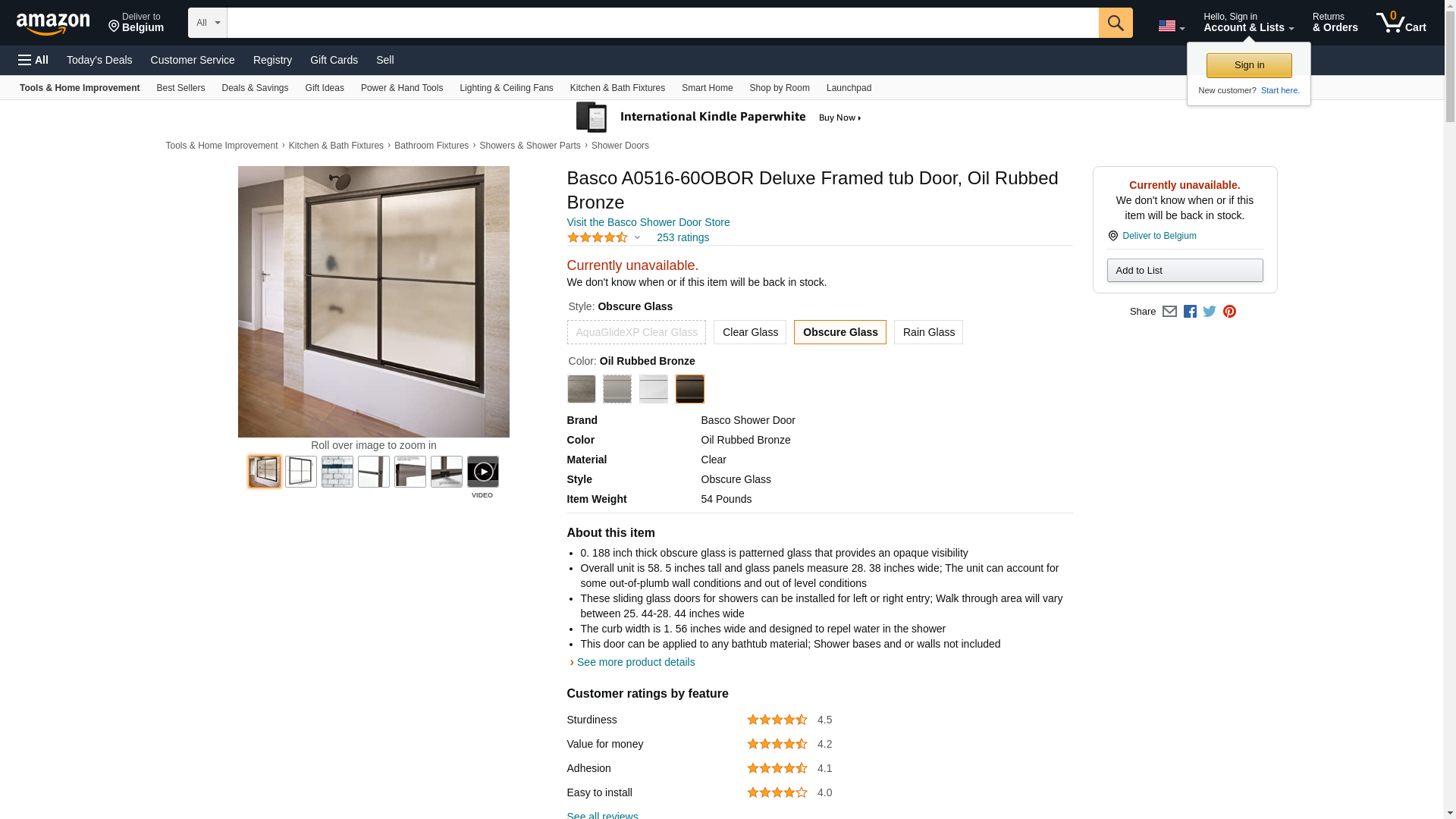 Basco A0516-60OBOR Deluxe Framed tub Door, Oil Rubbed Bronze