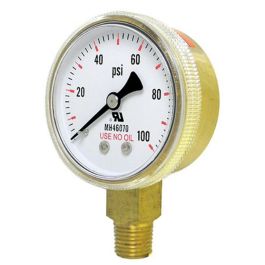 PIC Gauges 501D-UNO-204G Bottom Mount Dry Oil Free Pressure Gauge w/ Polished Brass Case, Copper Alloy Bourdon Tube, Twist-on Plastic Lens, 2" Dial, 0/200 psi Range, 1/4" Male NPT
