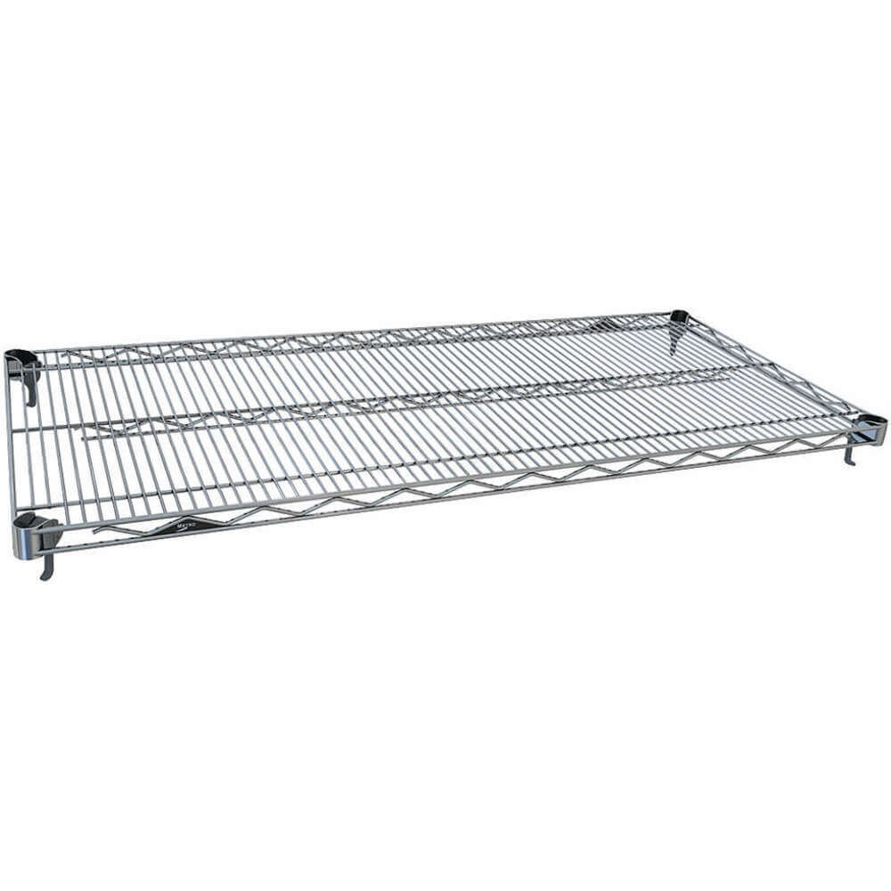 | Feature | <b>Price For:</b> Each <b>Item</b>: Wire Shelf <b>Adjustment Type</b>: Quick Corner Release <b>Material</b>: steel <b>Color</b>: silver <b>Item</b>: Wire Shelf <b>Width</b>: 36" <b>Depth</b>: 18" <b>Finish</b>: Chrome plated <b>Capacity</b>: 800 lb. <b>Country of Origin (subject to change)</b>: Multiple |