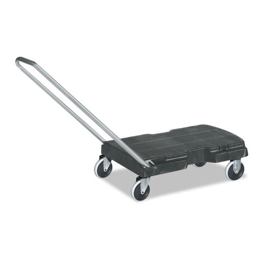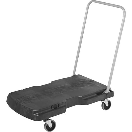 The Rubbermaid Triple Trolley features a 3-position handle and a non-skid platform. The handle lets you push, pull or fold flat the trolley, while the platform helps prevent load shifting. The trolley collapses and folds for storage purposes. Structural foam deck resists rust, dents, chipping and peeling. Highlights: P