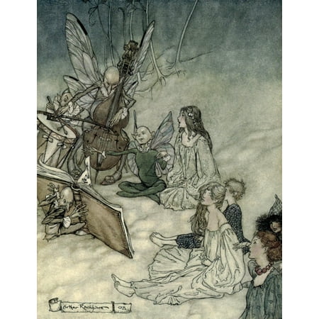 A. Rackham Stretched Canvas Art - Midsummer Night's Dream 1908 And a fairy song - Medium 18 x 24 inch Wall Art Decor Size.