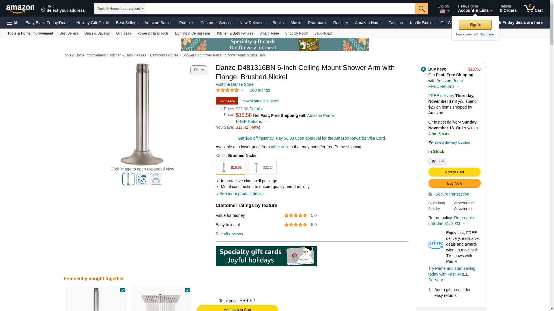 Danze D481316BN 6" Ceiling Mount Shower Arm w/ Flange D481316BN Finish: Brushed Nickel Features: -Solid