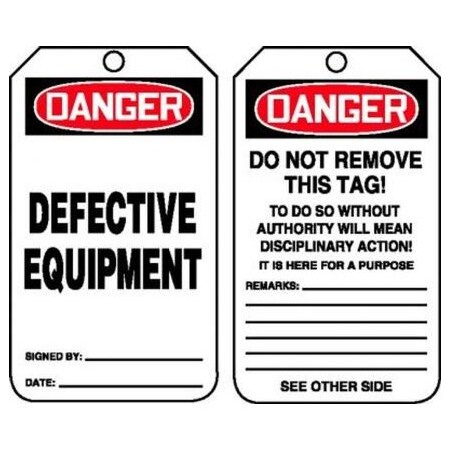Order MDT122CTP by Accuform PF-Cardstock Tag "Defective Equipment" - US Mega Store