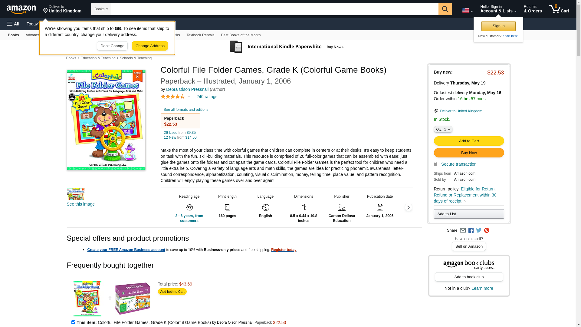 TeachersParadise - Carson Dellosa Education Colorful File Folder Games Resource Book, Grade K - CD-104048