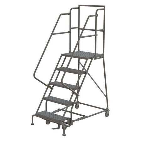 Tri-Arc KDSR105246-D3 5-Step 30" Deep Top Steel Rolling Industrial & Warehouse Ladder with Handrails, 24" Wide Perforated Tread