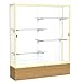 2075WB-GD-AK Backing: White, Frame Finish: Gold, Wood Finish: Autumn Features: -Anodized aluminum framing. -Sliding tempered glass doors for safety and easy access to contents. -Built in lock for security. -Adjustable levelers for stability on uneven floors. -Reflective mirror back adds luster and class. -Reliant Series collection. Product Type: -Trophy display case. Style: -Floor standing. Display Material: -Glass. Country of Manufacture: -United States. Frame Material: -Metal. Adjustable Shelves: -Yes. Dimensions: Overall Height - Top to Bottom: -72". Overall Width - Side to Side: -60". Overall Depth - Front to Back: -16". Overall Product Weight: -457 lbs.