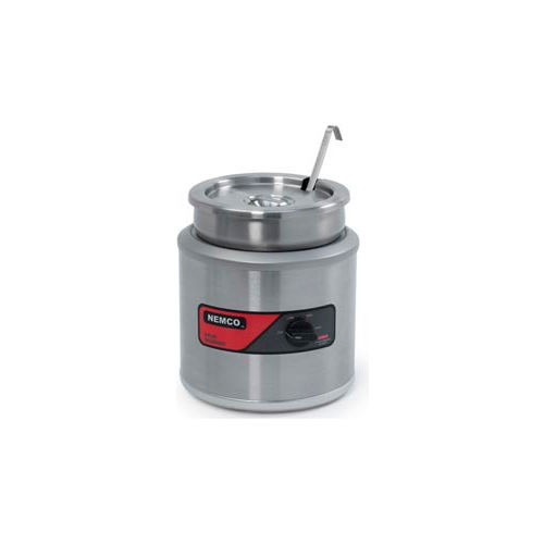 Nemco's Countertop Round Cooker/Warmer, 11 quart, with inset, cover & ladle, stainless steel construction, adjustable thermostat, 120v/60/1ph, 1250 watts, 10.4 amps, 6 ft. cord, NEMA 5-15P, cETLus, NSF.