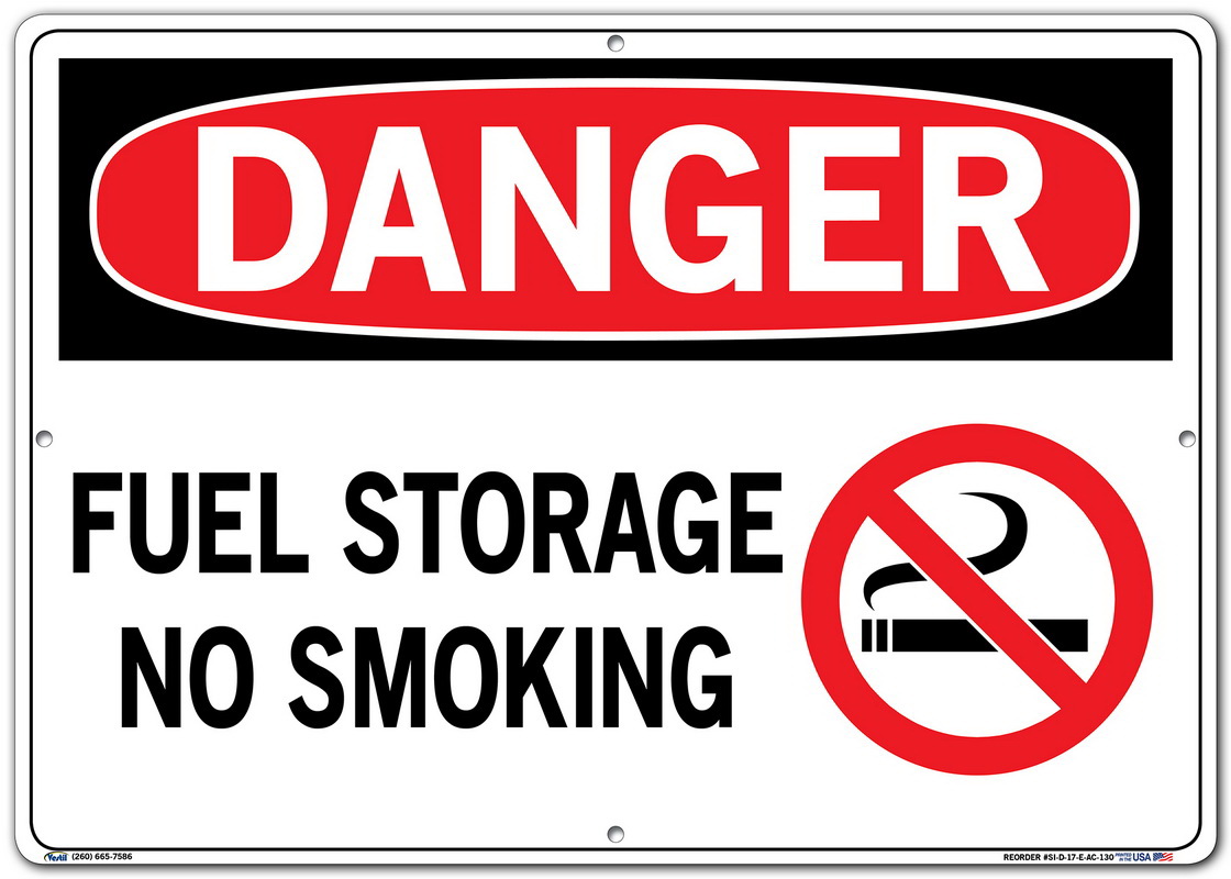 Vestil SI-D-17-E-AC-130 FUEL STORAGE NO SMOKING Danger Sign, Aluminum Composite, 0.130" Overall Size, 20.5" W x 14.5" H