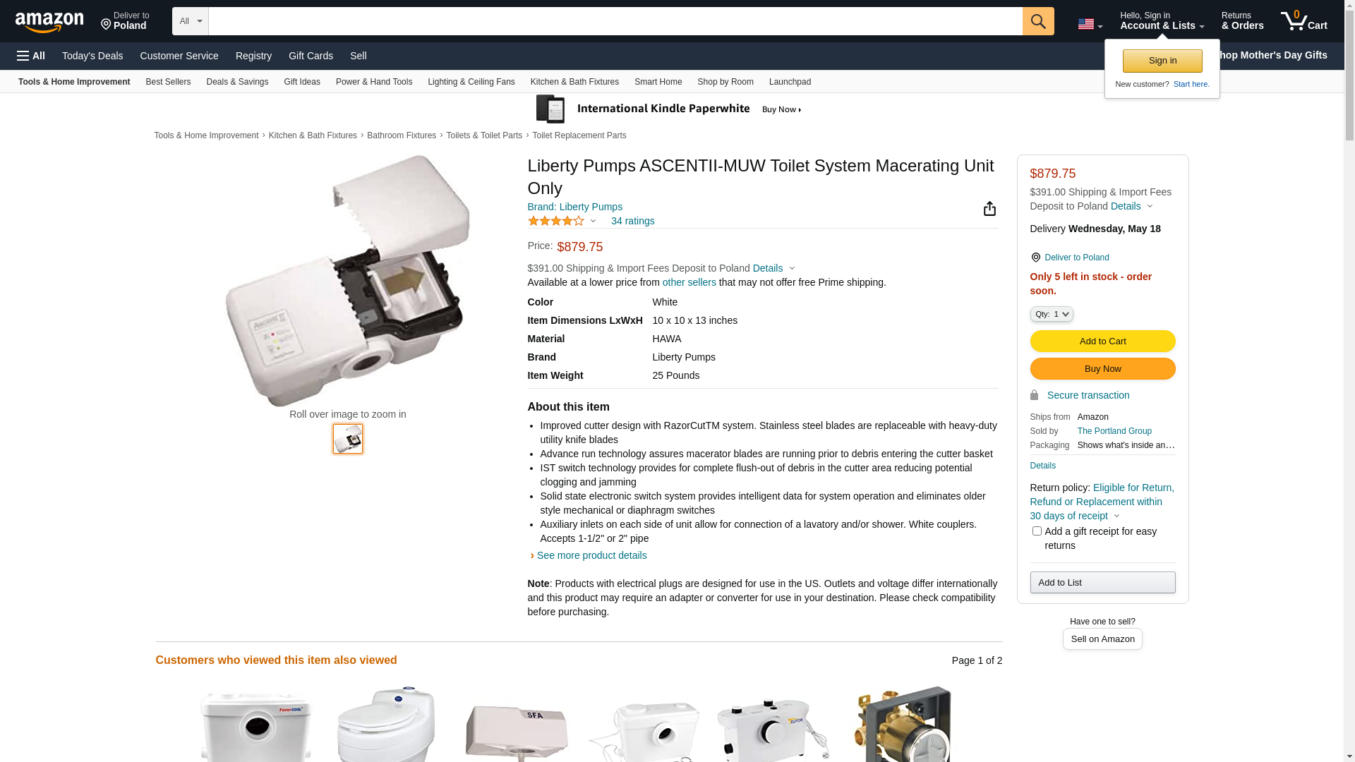 Liberty Pumps ASCENTII-MUW Toilet System Macerating Unit Only