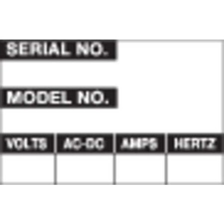 Brady WOAF-36-VP Aluminum Foil Tape Maintenance Labels , Black On Silver, 2.250" x 1.500" (57.150 Mm x 38.100 Mm), Legend "Serial No. Model No. Volts AC-DC Amps Hertz" (6 Labels per Card, 5 Cards Labels per Package)