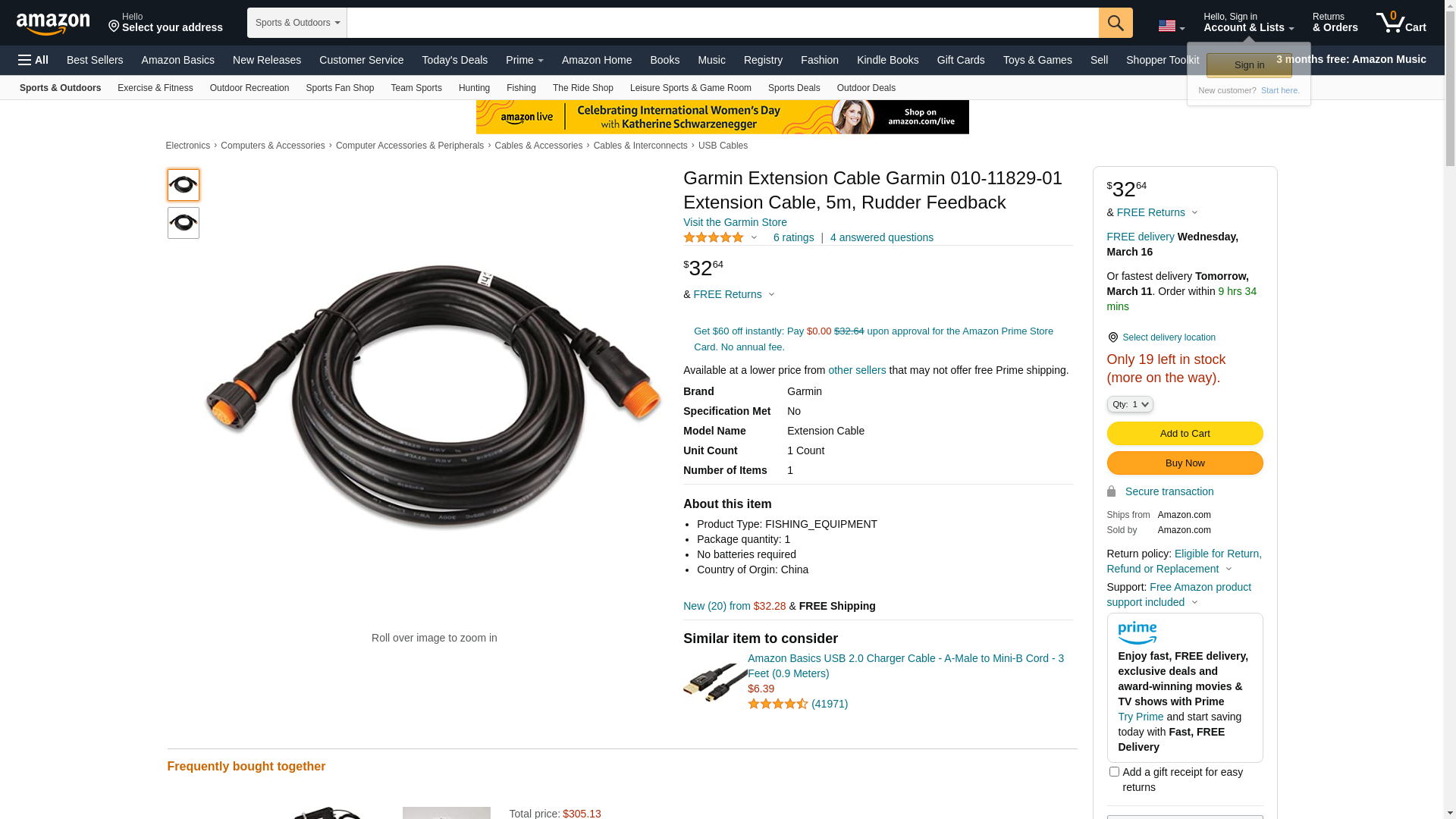 GARMIN ELEC. Garmin Extension Cable Garmin 010-11829-01 Extension Cable, 5m, Rudder Feedback