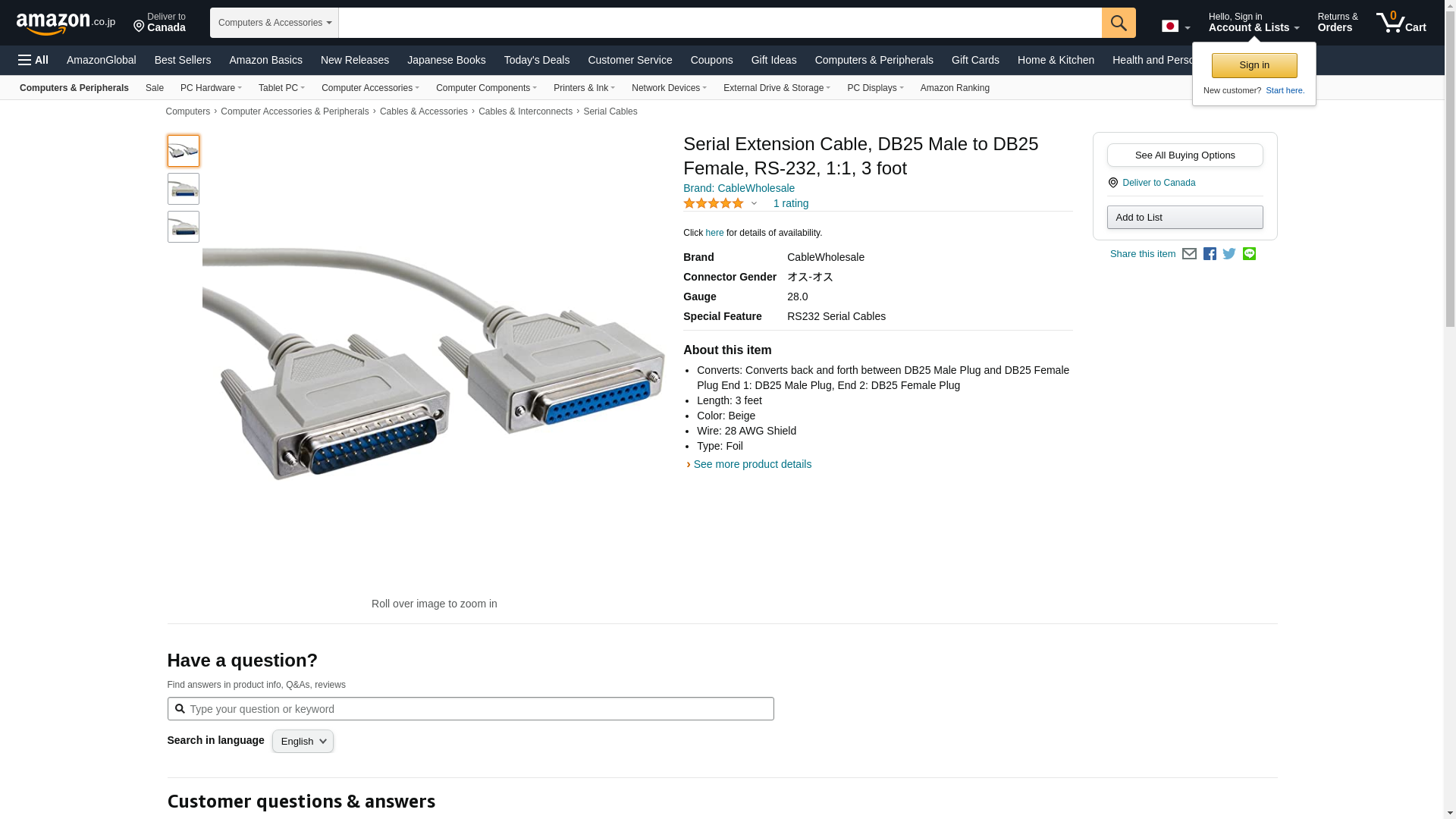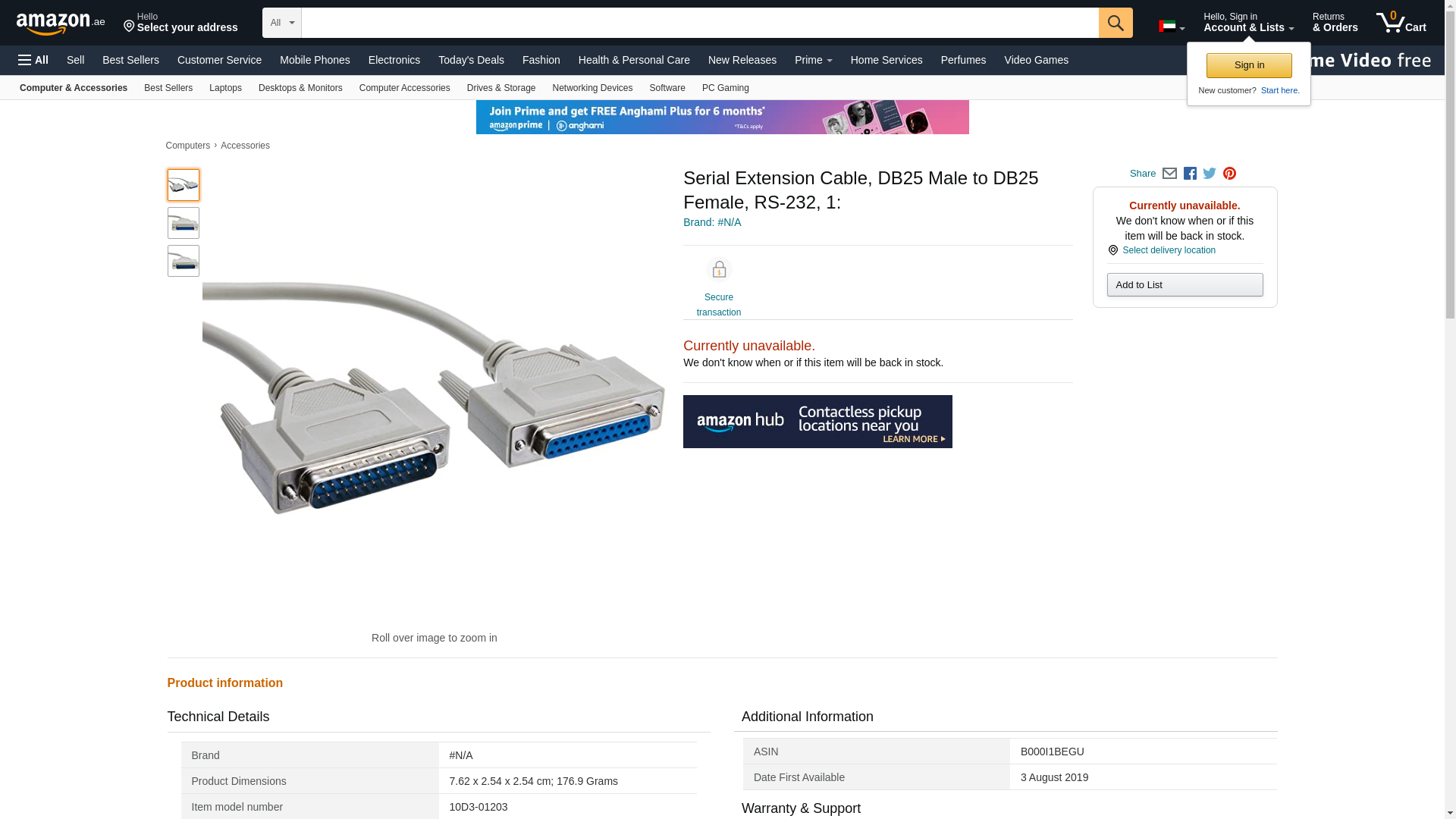 | Feature | DB25 Male / DB25 Female, 25C, 3 ft. |