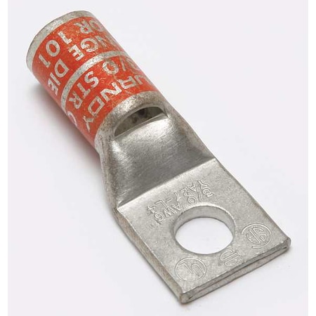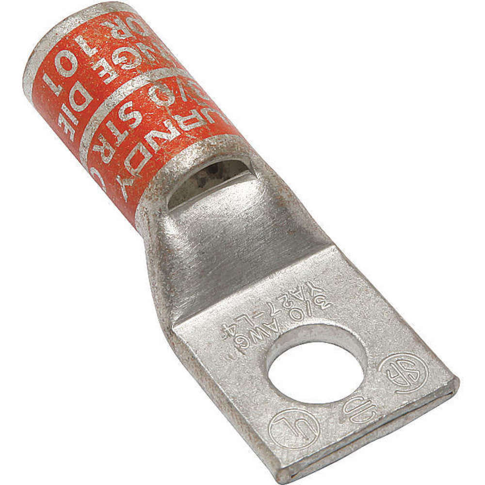 Burndy YA27L4-BOX One Hole Hylug Code Conductor Standard Barrel Copper Compression Terminal, 3/0 AWG Conductor, 3/8" Stud Hole Size, 0.91" Tongue Width, 2.29" Length, Orange