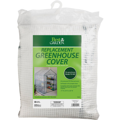 UV (ultra violet) protected PVC (polyvinyl chloride) thermal cover with full length roll up zipper door for easy access and ventilation. Complete with hook and loop ties, and D-ring hooks for greater stability when attached to wall. Replacement cover for large greenhouse with shelving. Greenhouse structure is not included with purchase of replacement cover. Width (Ft.): 4.67 Height (Ft.): 6.42 Depth (Ft.): 4.67 Shape: Walk-In Vertical Rectangle Material: Vinyl WARNING: Cancer and Reproductive Harm - www.P65Warnings.ca.gov -