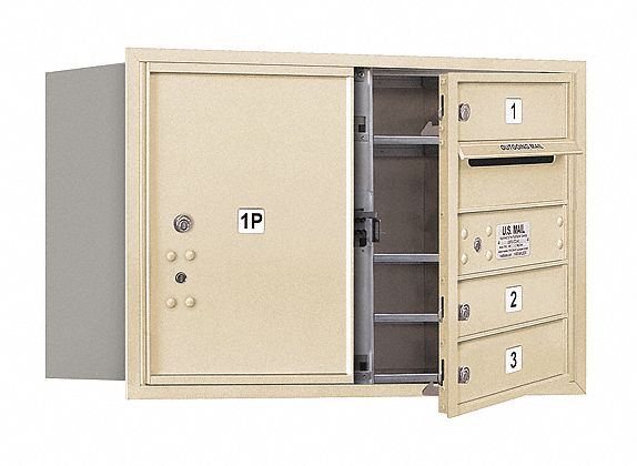 - Door Size: (3) 13-1/4" W x 3-1/4" H; Parcel Locker Door Size: (1) 13-1/4" W x 17-1/4" H