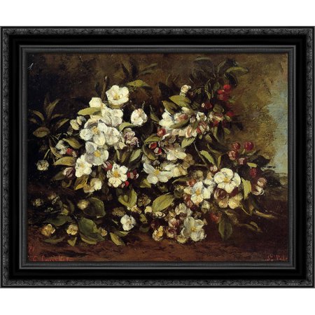 Flowering Apple Tree Branch 23x20 Black Ornate Wood Framed Canvas Art by Courbet, Gustave