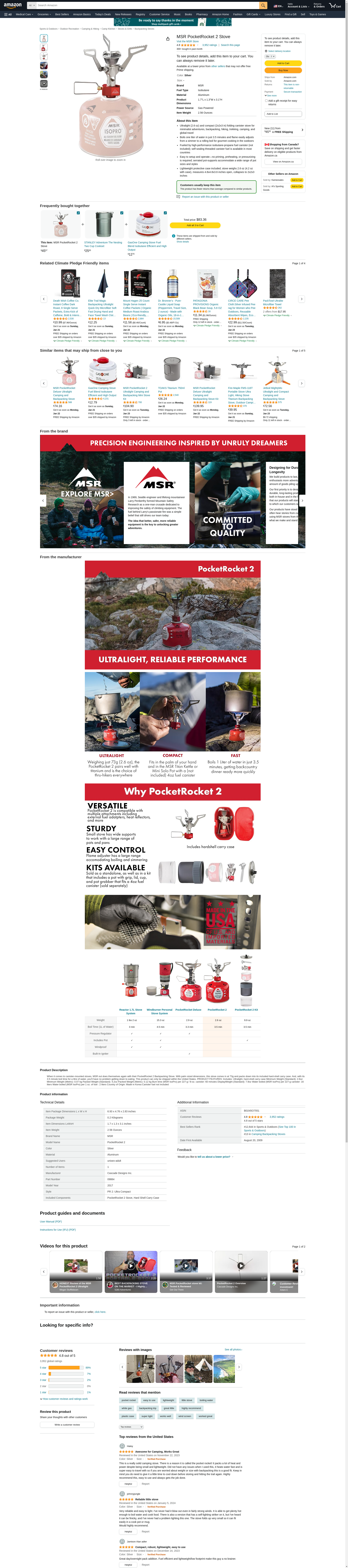 MSR PocketRocket 2 Ultralight Camping and Backpacking Stove