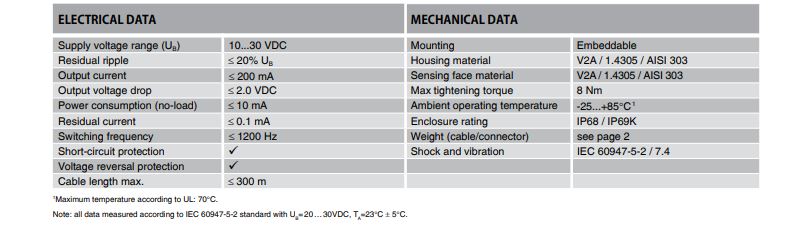 Contrinex DW-AS-703-M8 Proximity Sensor. ? Operating distance Sn 3 mm Housing size [mm] M8 Mounting Embeddable Polarity PNP Output Normally open (NO) Interface IO-Link Connection M12?4-pin Supply voltage 10?30 VDC Switching frequency max. [Hz] 1200 Housing material Stainless-steel V2A Enclosure rating (IP) IP 68 / IP 6