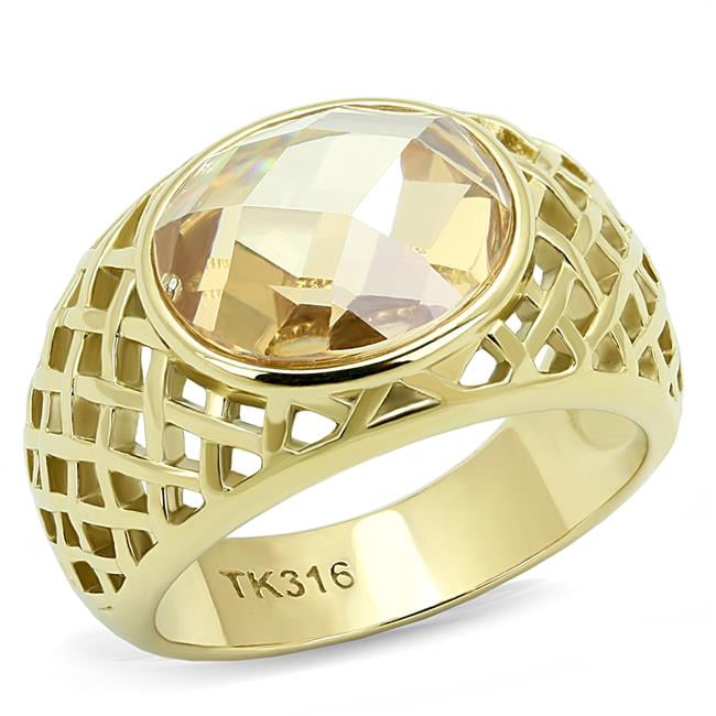 Alamode TK3122-10 Women IP Gold Stainless Steel Ring with AAA Grade CZ in Champagne - Size 10