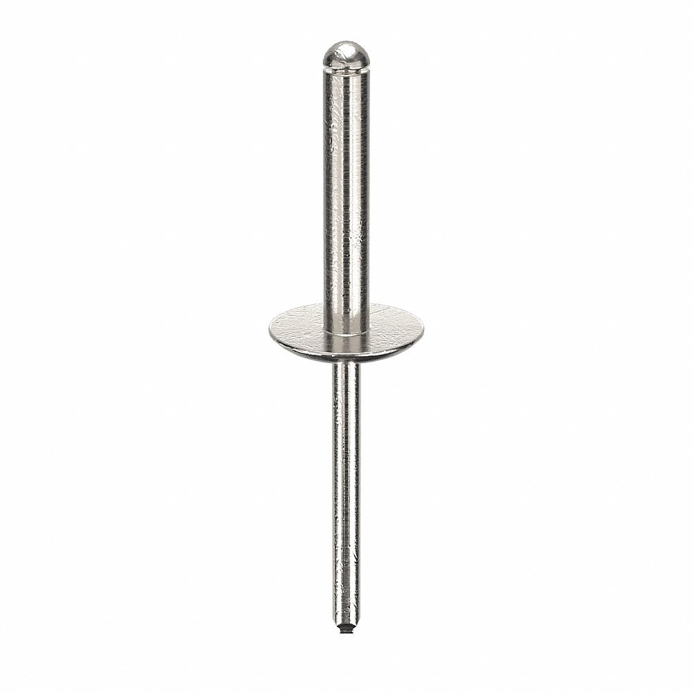 Blind Rivet, System of Measurement Inch, Overall Length 2 13/32 in, Body Length 1 1/16 in, Shank Diameter 0.188 in, Product Type Blind Rivet, Body Material Aluminum, Finish Plain, Head Type Flanged, Head Diameter 5/8 in, Head Angle 90 Degrees , Shear Strength 292 lb, Tensile Strength 471 lb, Maximum Hole Diameter 0.196 in, Minimum Material Thickness 1/2 in, Maximum Material Thickness 7/8 in, Material Grade/Class IFI-116-19, Mandrel Material Steel, Features Not Applicable, Color Gray