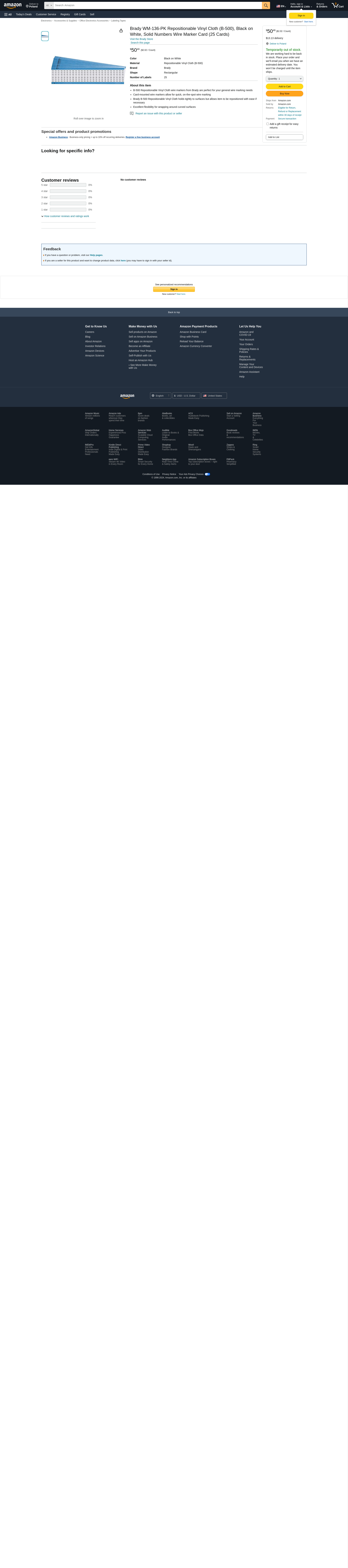 Brady Wm-136-Pk / Pack Of 25 Cards - WM-136-PK