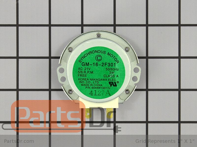 Genuine Original Equipment Manufacturer (OEM) parts! This turntable motor (part number 6549W1S017J) is for microwaves. Turntable motor 6549W1S017J rotates the glass tray inside the microwave oven. Because high-voltage capacitors in a microwave can retain a lethal electrical charge even when the microwave is unplugged, a service technician should install this part.