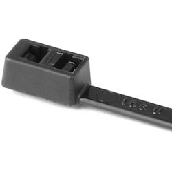 - The tie contains a dual locking design to secure two bundles at once.