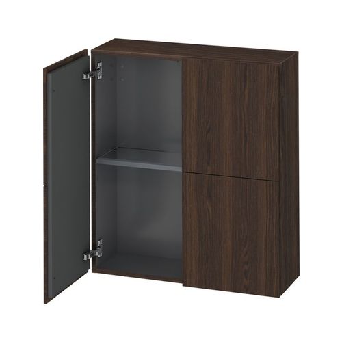 DURAVIT LC116706969 L-CUBE 27-1/2 X 9-1/2 INCH SEMI-TALL CABINET WITH TWO DOORS AND ONE GLASS SHELF, BRUSHED WALNUT