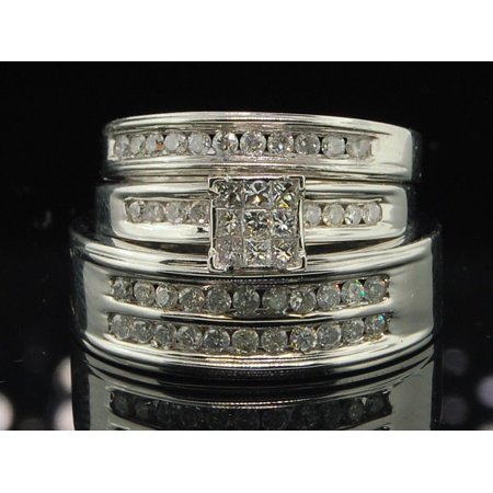 <p>This Trio Set is part of our brand new diamond collection.</p> <p>This particular trio set features a perfectly matching set for both Men and Ladies.</p> <p>The Ladies ring has a combined width of 6.25mm, the center is raised 6.50mm from the center of the engagement ring, and the head measures 6.00mm wide.</p> <p>The Men's band is 7.75mm wide at its widest point.</p> <p>If you would like this ring in a different size please message us, for resizing fees, and we will get back to you right away.</p> <p><b><i>**Measurements are given on the left hand side under product details**</i></b></p> <p><b><i>**Comes with Presentation Box & Jewelry For Less Appraisal Paperwork.**</i></b></p>