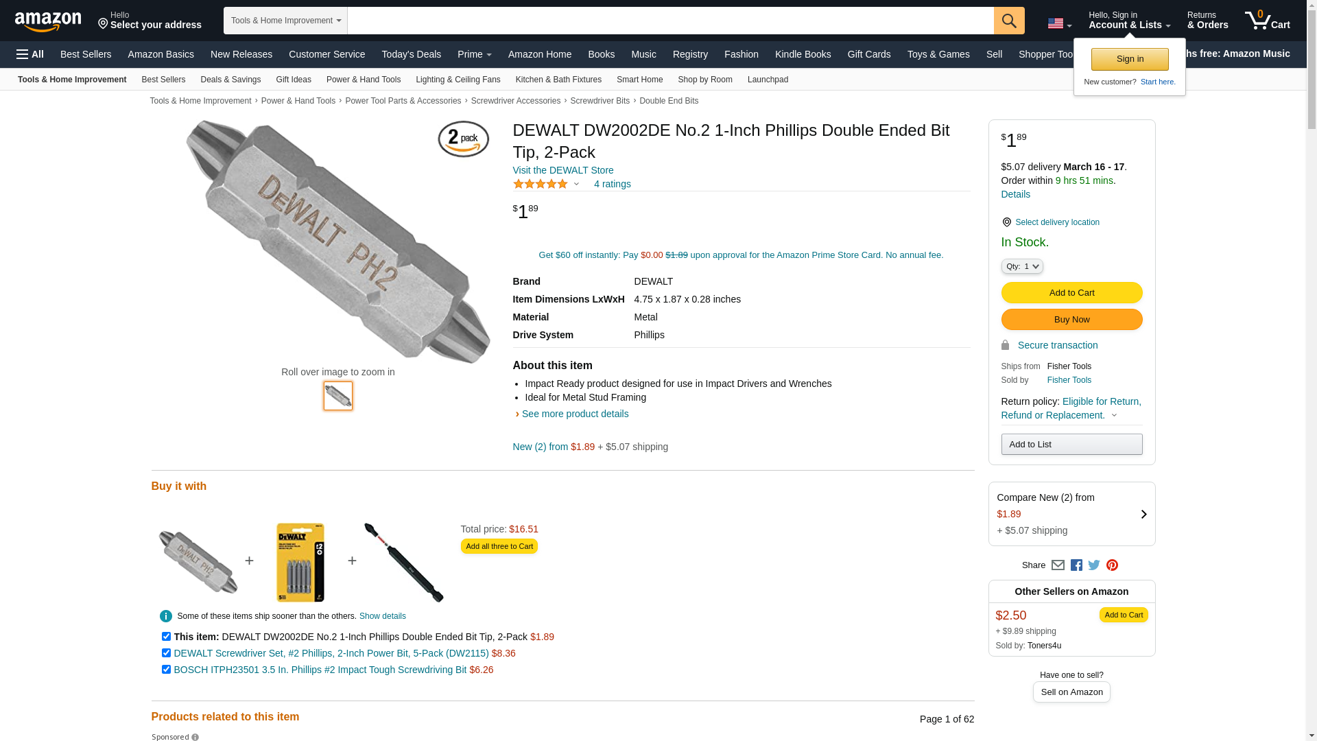 DEWALT DW2002DE No.2 1-Inch Phillips Double Ended Bit Tip, 2-Pack