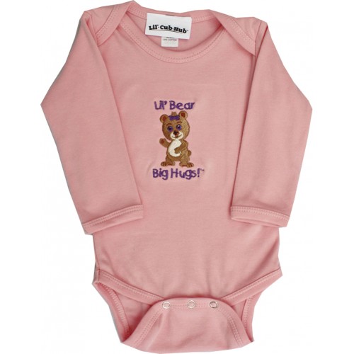 Lil Cub Hub 5CLSOGBP-36 Pink Long Sleeve One Piece - Girl Bear, 3-6 months
