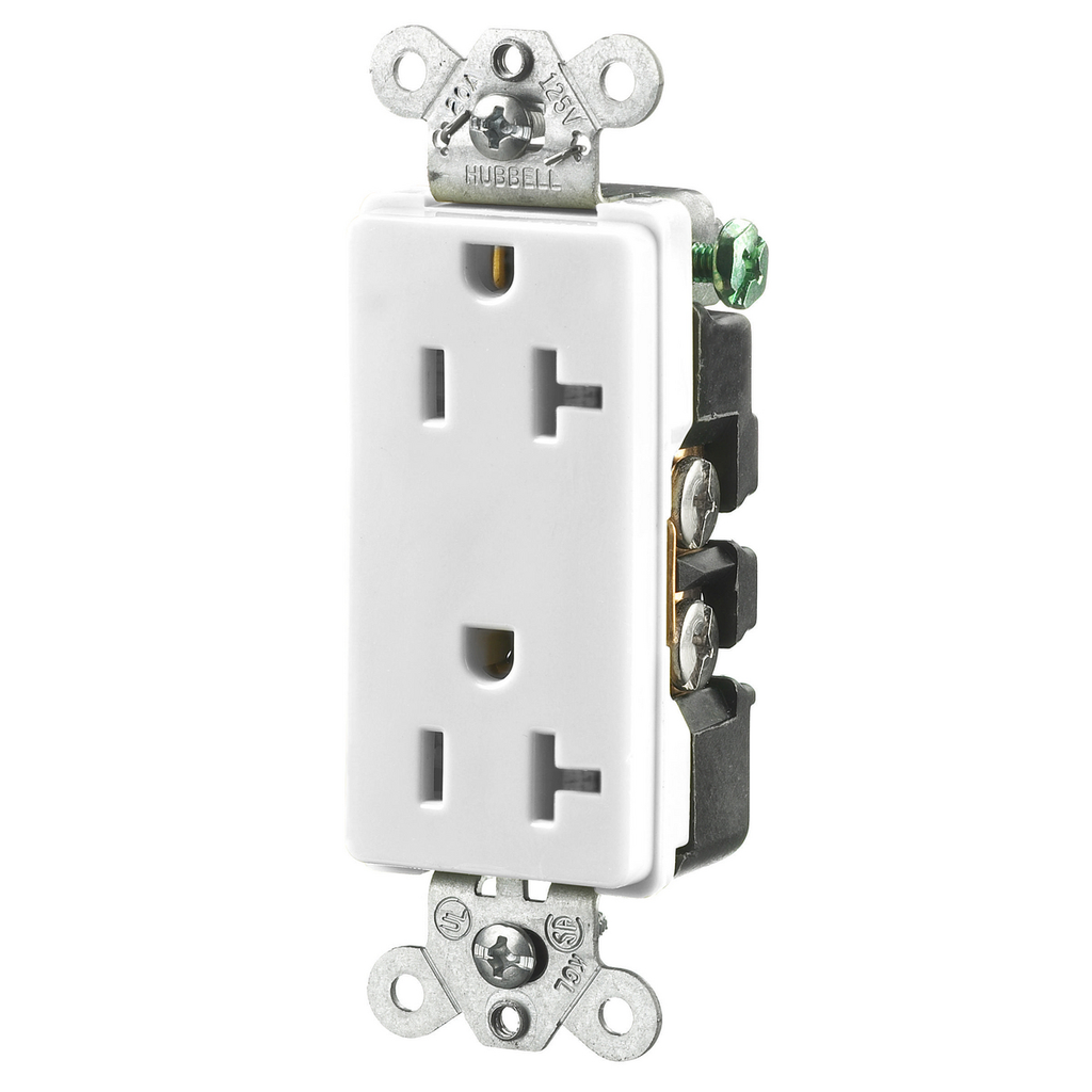 Hubbell HBL2162WA Decorator-Style Duplex Receptacle, 20 amp, 125V, 5-20R, White