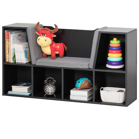 Basicwise Black Modern Multi-Purpose Bookshelf with Storage Space and Gray Cushioned Reading Nook