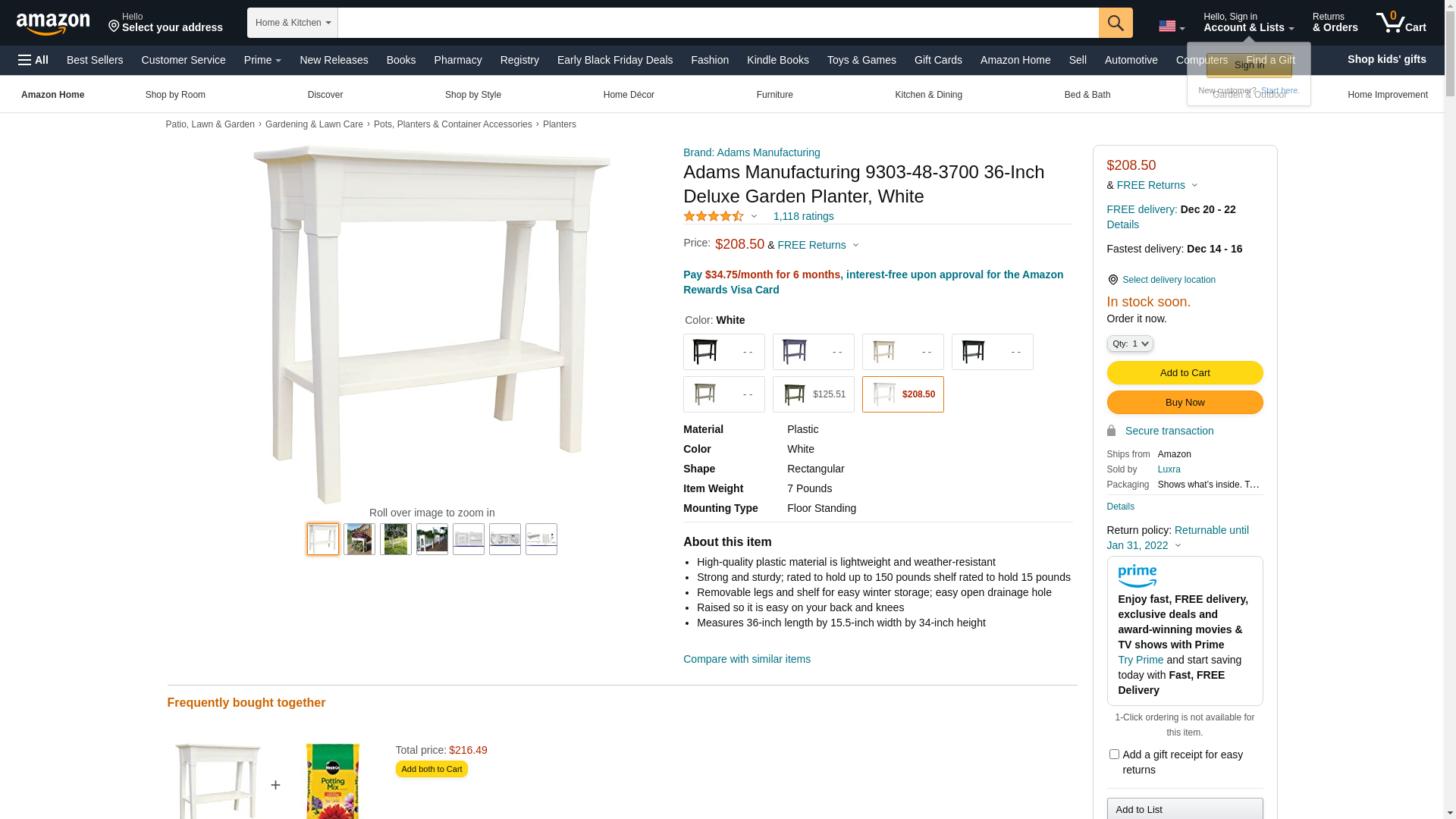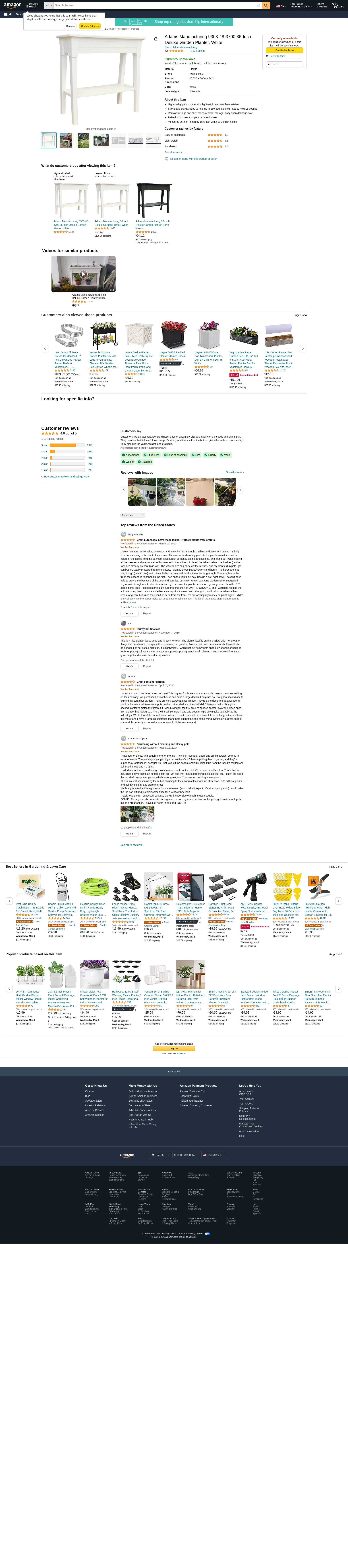 Adams Manufacturing 9303-48-3700 36-Inch Deluxe Garden Planter, White