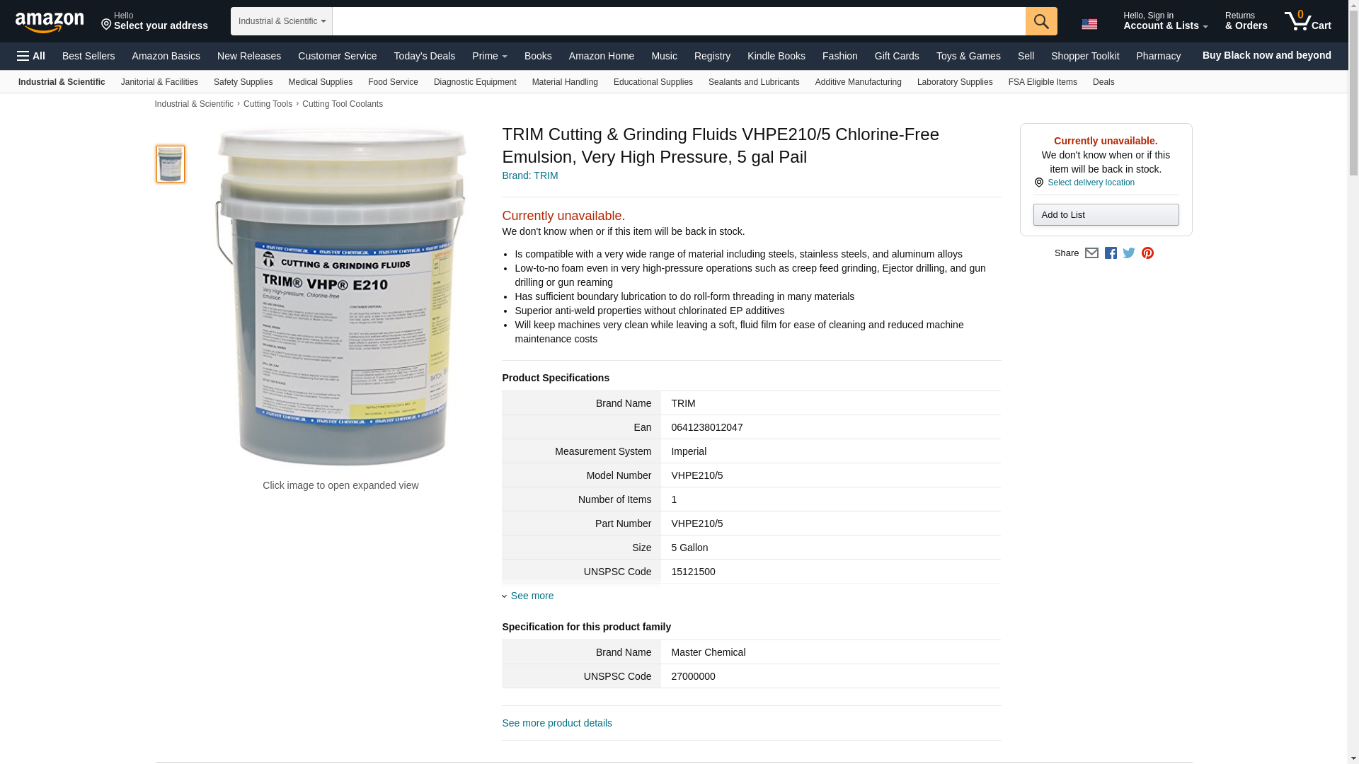 TRIM Cutting & Grinding Fluids VHPE210/5 Chlorine-Free Emulsion, Very High Pressure, 5 gal Pail