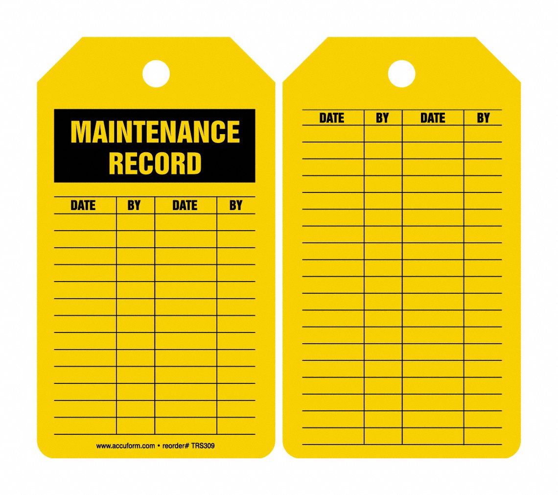 Order TRS309CTP by Accuform Equipment Status Safety Tag "Maintenance Record" - US Mega Store