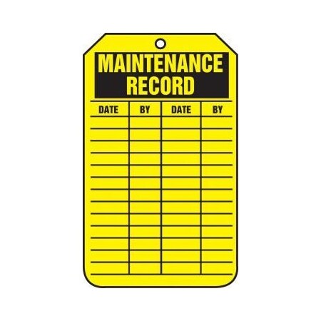 Accuform 25 "Maintenance Record" Status Tags, 5.75" x 3.25", PF-Cardstock, Black on Yellow, TRS309CTP