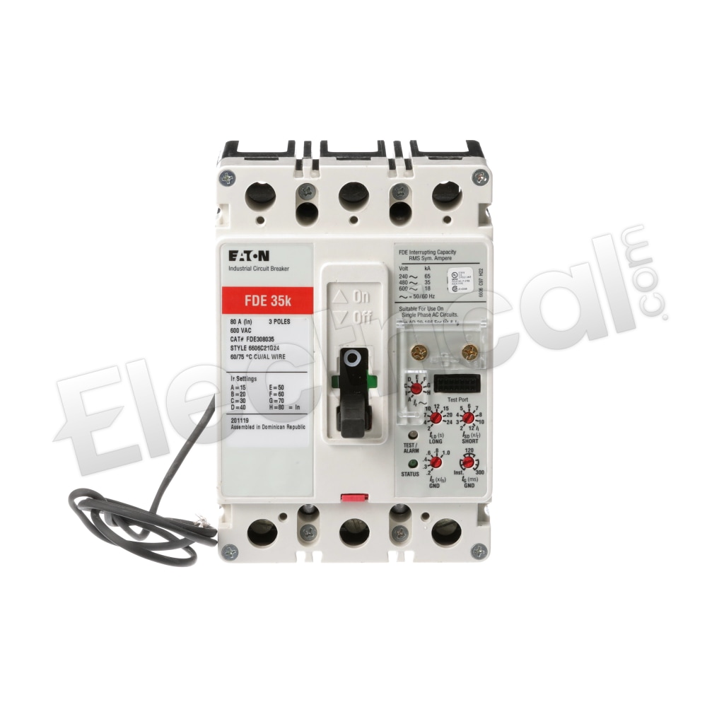 Mfr Brand Name: CUTLER HAMMER / Catalog No.: FDE308036 / Product Name: CUTLER HAMMER FDE308036 U 80A 600V 3P USED / Model: FDE 35K / Poles: 3 / Amps: 80 / Volts: 600