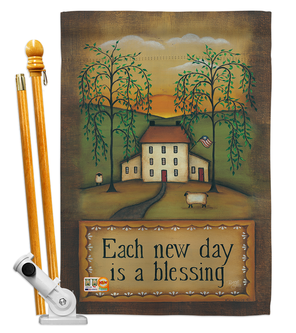 Breeze Decor HS100072-BO Each New Day Inspirational Sweet Home Decorative Vertical House Flag Set, 28"x 40" w/Flagpole, Multi-Color