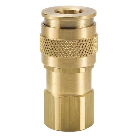 ' Coupler Body, Industrial Interchange Type, Pipe Size 1/4 In., (F)NPT Hose Connection, Body Size 1/4 In., Max. Flow 25 cfm, Brass, Max. Pressure 150 psi, Nitrile Seals, Locking Type Push-to-Connect, Temp. Range -40 Degrees to 250 Degrees F '